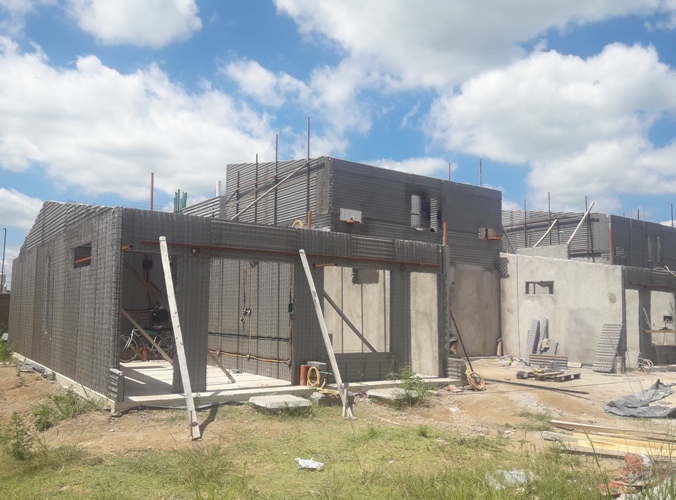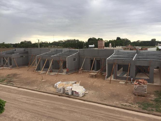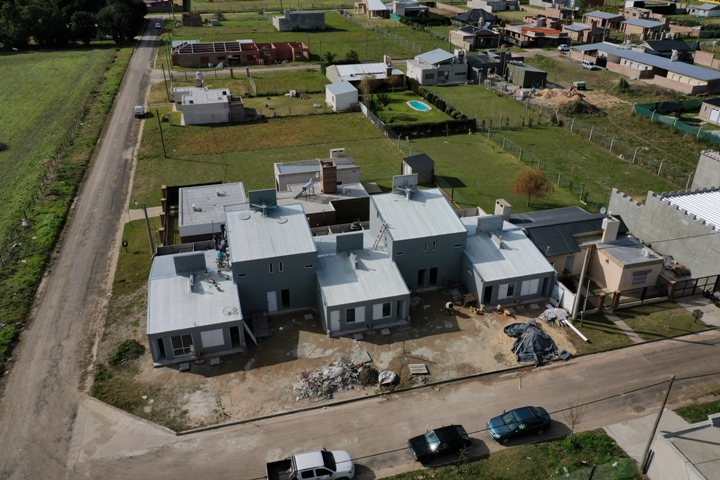 Obra en CASILDA: Complejo de 10 departamentos – 48 M2 cada uno – en el barrio Los tilos. Cuenta con 6 departamentos de planta baja con cocina/comedor, baño y habitación. Y 4 departamentos con cochera, cocina/comedor y baño en planta baja y habitación en el primer piso.